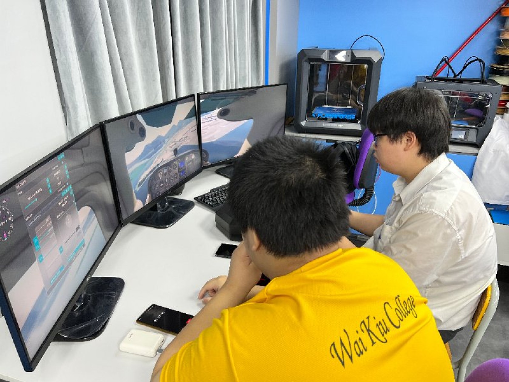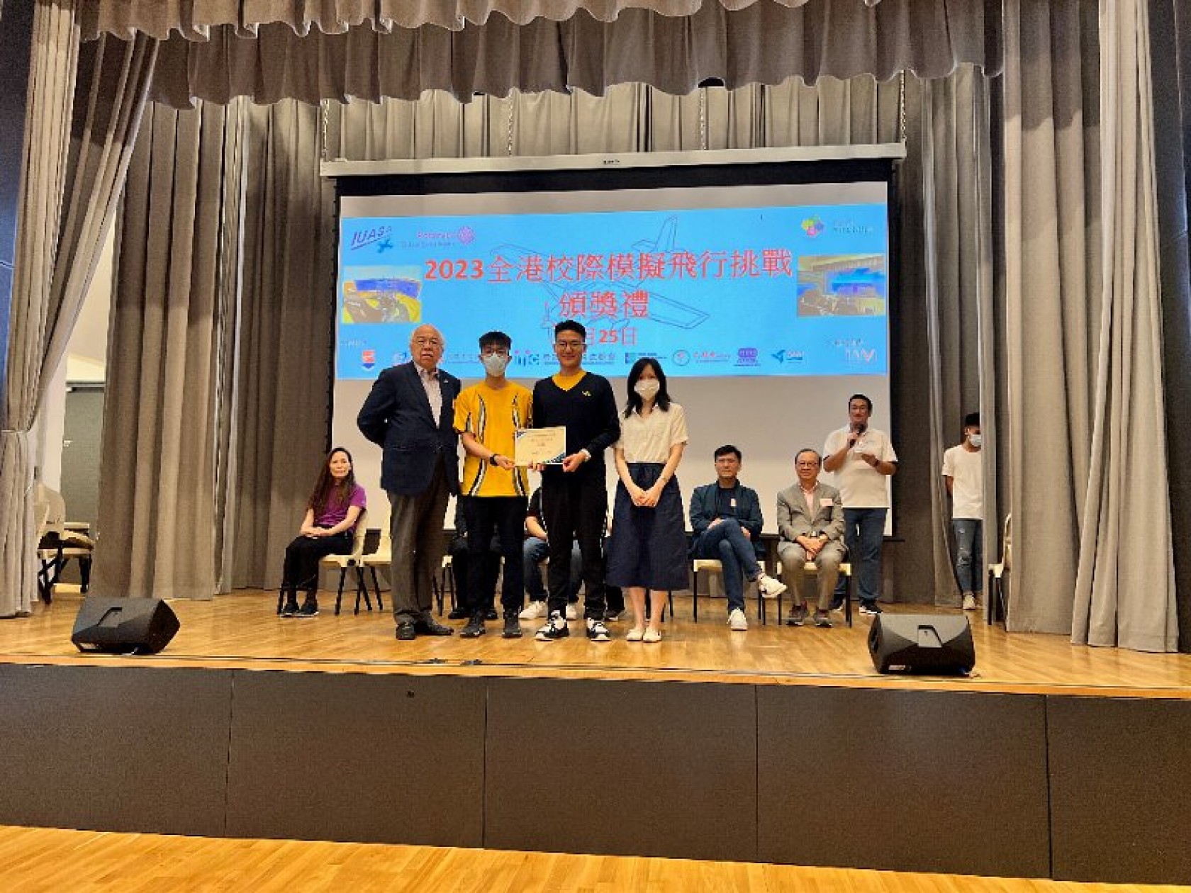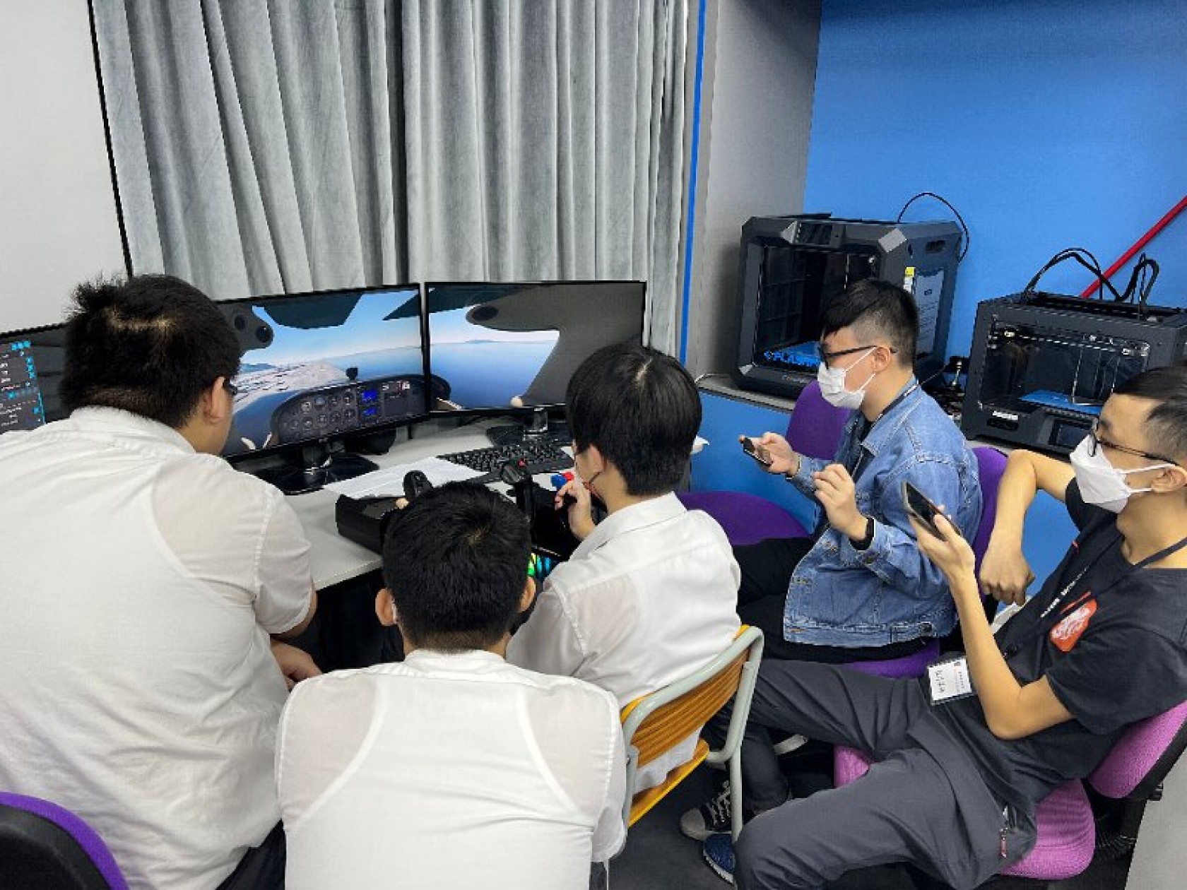 本校STEM隊伍參與教育局商校合作計劃「2223全港校際模擬飛行挑戰賽」。評審十分嚴格,參賽者除了展示穩定及精準的駕駛技術,更需要爭取以最短時間完成航道,方能角逐獎項殊榮。同學充分發揮嫺熟的技巧,表現優異,本校5C劉志遠和余俊良同學大展所長,奪得高中組最佳模擬器操控賽亞軍及隊制全能賽季軍。而3B班林燚及和陳俊樂獲得初中組最佳飛行時間冠軍。