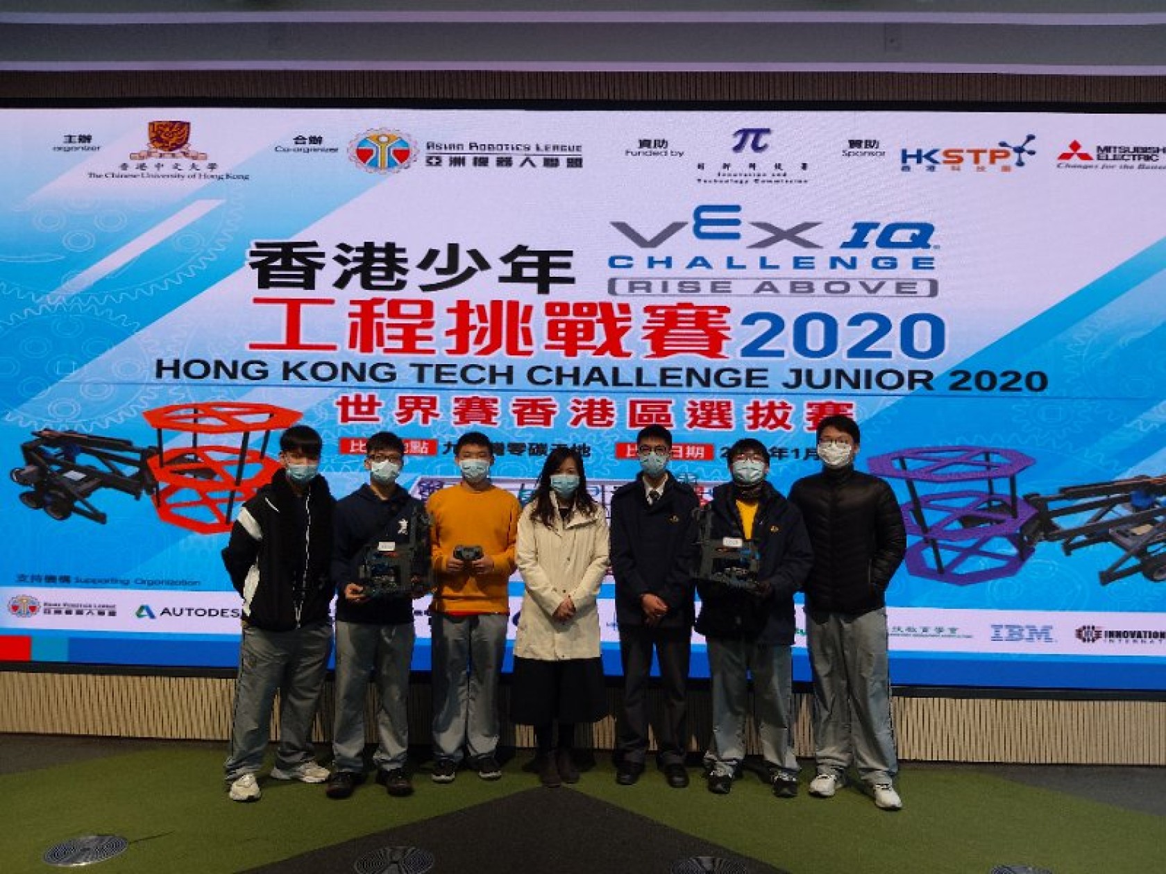 由亞洲機器人聯盟 (ARL) 及 香港中文大學創新科技中心(CINTEC)聯合舉辦【香港少年工程挑戰賽2020 - 世界賽資格賽】。 本校參賽隊伍表現優異,恭喜本校參賽隊伍 (3A 劉志遠、劉暐麒、余俊良同學)取得代表香港 VEXIQ機器人世界錦標賽 的資格。 同時獲得【香港少年工程挑戰賽2020 - 世界賽香港區選拔賽VEX機械人技能賽 設計獎】