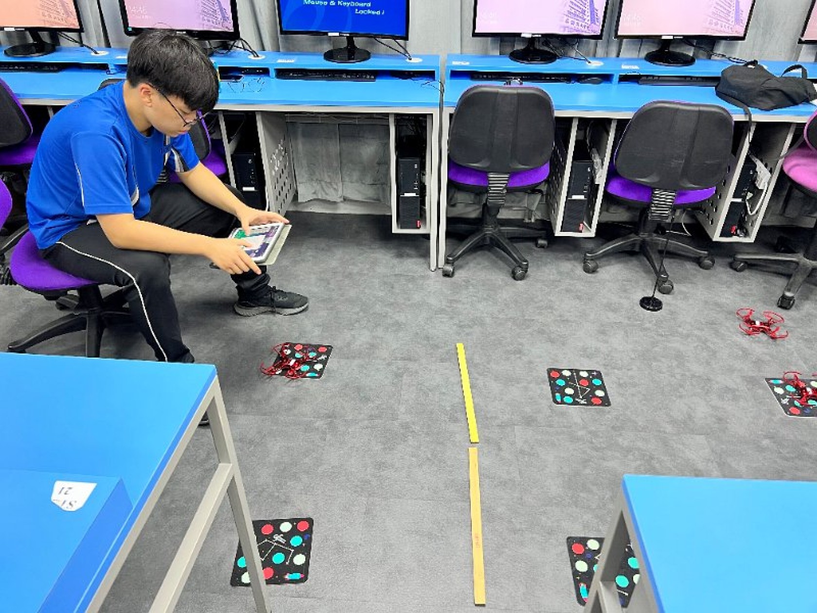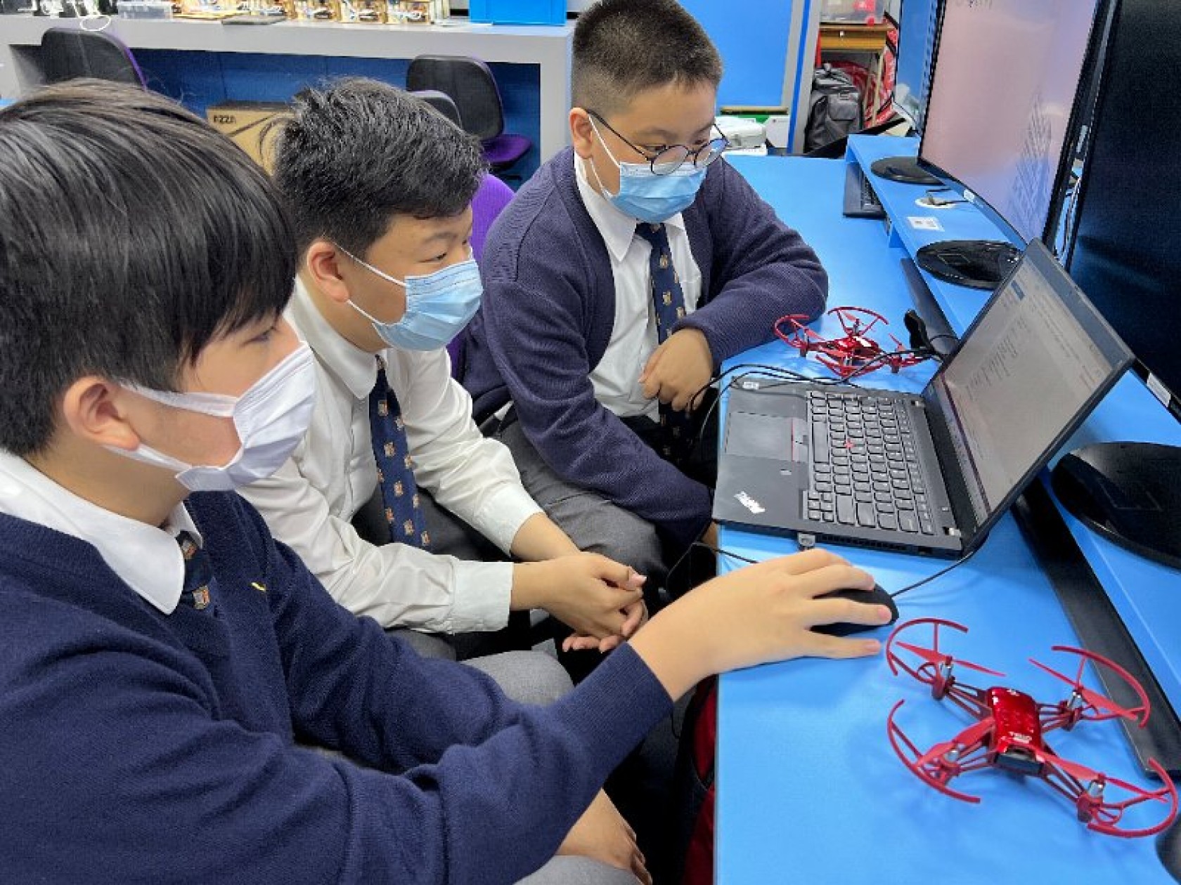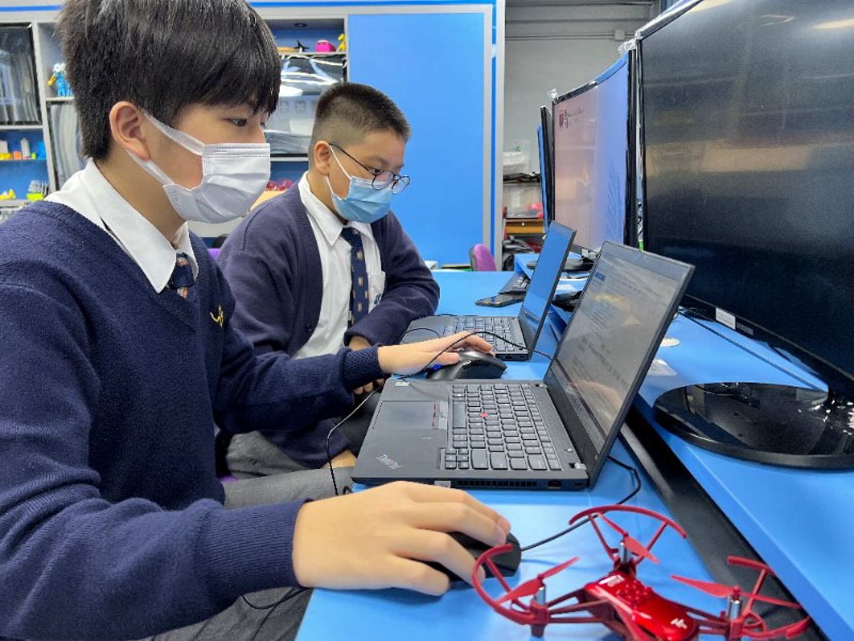 要培養學生的解難能力,仰仗於不同的知識技能的靈活運用。有見及此,學生透過參與全港學界無人機挑戰賽,除了應用基本的程式邏輯外,更需要結合數學的知識解析問題,以及講求手眼協調的飛行技術才能完成整個賽事。同學先需要手動操控無人機,逃離邊長僅2米的立方體迷宮;其後學生必須自設編程,讓無人機自動飛過六個障礙物,完成編程障礙賽。在兩項比賽中,同學們表現優異,充分展現出協作、溝通及解難能力,並獲得一級認可資格,值得嘉許。